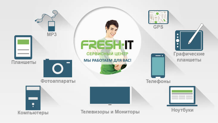 Сервисный Центр FreshIT основан в 2011 году. Мы выполняем ремонт ноутубков, телефонов, планшетов, мониторов, персональных компьютеров, электронных книг, наушников, а также офисной техники.